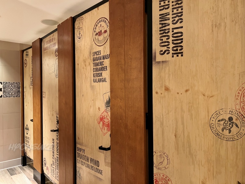 トイレ内にも探検家の世界観が反映されており、壁には冒険をイメージした装飾が!